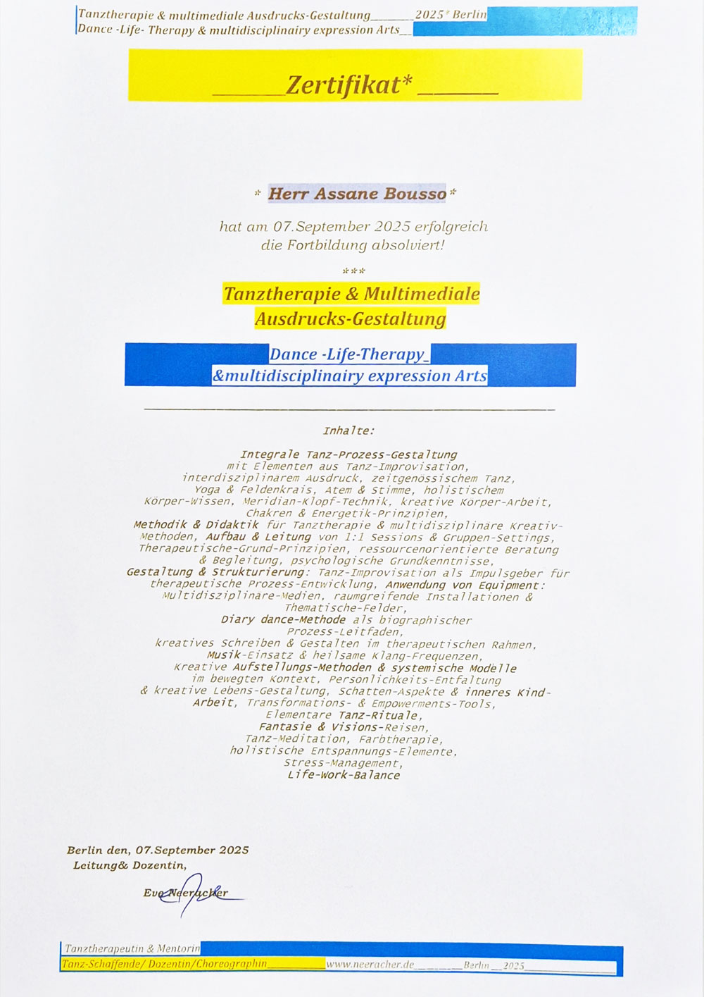 Ich verbinde Tanz, Reiki und Qi Gong, um Körper, Geist und Seele in Einklang zu bringen. Mit über zehn Jahren Erfahrung in Tanztherapie und energetischer Arbeit unterstütze ich Menschen dabei, Emotionen durch Bewegung zu lösen und innere Balance zu finden.